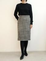 - ハウンドトゥース膝丈スカート(アイボリー×ブラック)
