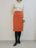 - ハウンドトゥース膝丈スカート(オレンジ×ピンク)