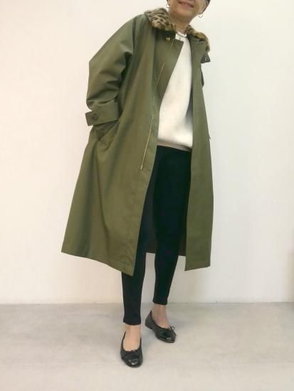 - ファー替襟ジップステンカラーコート(ベージュ)